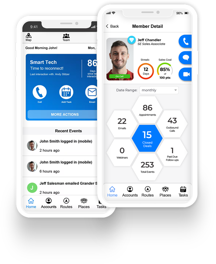 See real-time sales activities from CRM so you can recognize performance and share best practices in the same app they are using to prospect with. Then talk via video to share best practices without doing a live call.